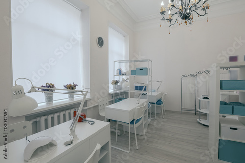 Chairs In A Pedicure Beauty Salon Interior Of Empty Modern Nail Salon Work Places For Masters Of Manicure Pedicure Cabinet Stock Photo Alamy